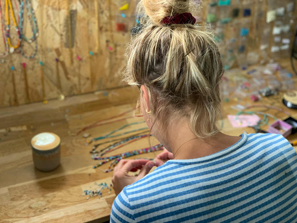 In april 2018 onderging ik, Lot van Ommen, een eerste heupoperatie. Om de revalidatie wat makkelijker door te komen begon ik met het knutselen van sieraden. Vroeger knutselden we veel en daar hadden we nog wat materiaal van liggen. Na mijn eerste operatie begon ik met het maken van wat sieraden voor mijzelf en vriendinnen, totdat ik weer terug kon naar mijn oorspronkelijke werk.